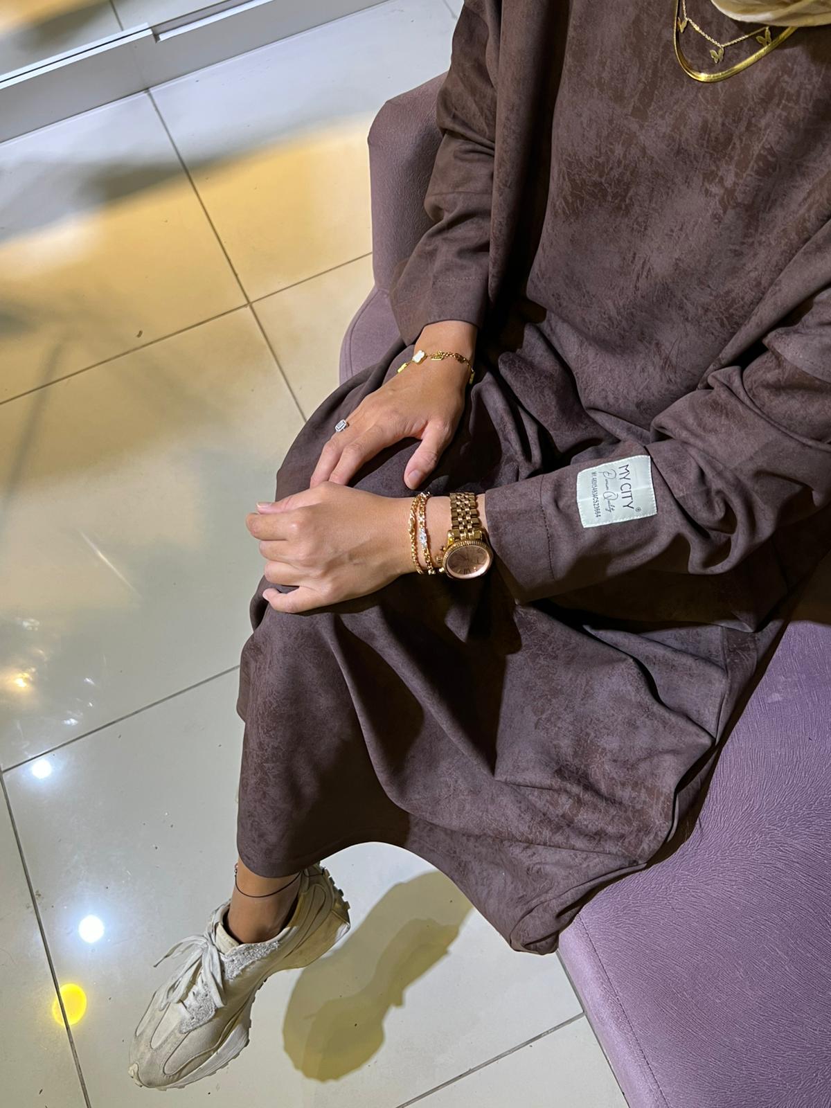 Kahve Oyşo Yıkama Desen Elbise
